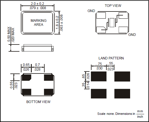 尺寸:2.0*1.6*0.5mm